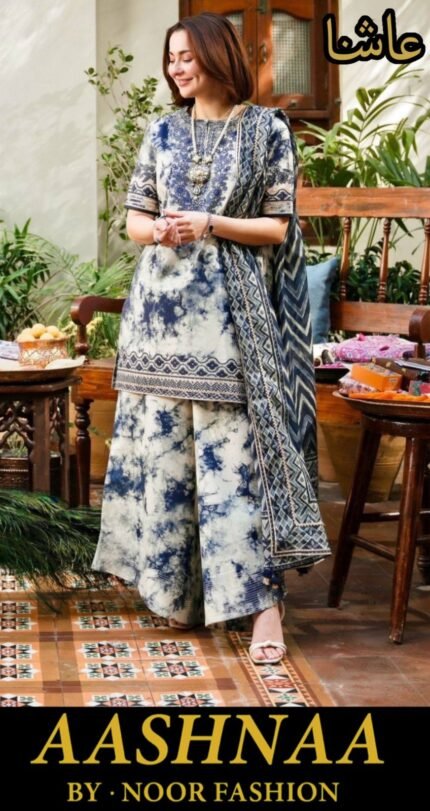 Original price was: Rs. 3,250.Rs. 2,550Current price is: Rs. 2,550.Aashnaa by Noor brings you to a world of ethereal glory with its fusion of Eastern elegance and modern style. Explore our luxurious fabrics, like silks and velvets, embellished with exquisite embroidery and patterns. All designs are incredible, with classic colors and motifs that reflect Pakistan's rich handcrafted legacy.